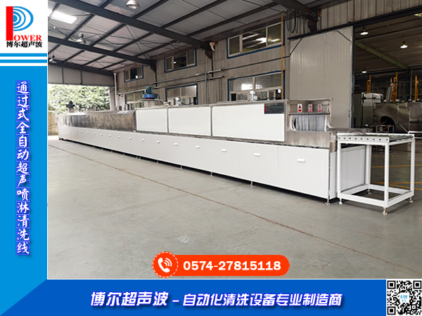 工藝流程:自動上料――高壓噴淋脫脂粗洗――高壓噴淋脫脂精洗--高速風切隔斷--噴淋漂洗--噴淋熱漂洗――噴淋防銹――多段式風切――隧道式烘干――自動下料